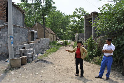 記者在現(xiàn)場(chǎng)看到,程家住在張家的北面,程家的大門(mén)對(duì)著張家的后墻,程、張兩家之間是一條村路,張家就是在自家屋后路上蓋的房砌的墻。