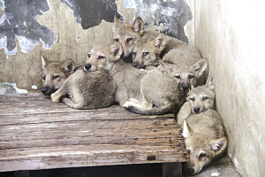 11日上午,在工作人員的指引下,記者在狼館終于看到7只小狼崽害羞地走了出來(lái)。7只小狼崽都是全身黑灰色,身長(zhǎng)約30厘米,極像小狗,溫順乖巧的樣子一點(diǎn)也看不出狼的兇狠。常州淹城野生動(dòng)物世界副總經(jīng)理、動(dòng)物專家李代兵分析說,它們先前一直跟山羊媽媽一起生活,這個(gè)“羊奶媽”對(duì)它們的影響很大。
