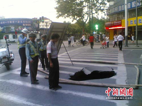 中新網(wǎng)南京6月16日電(朱曉穎)今日下午6時40分許,位于南京鬧市區(qū)的夫子廟路口地面突然塌陷,露出長兩米、寬兩米、深三米的大坑,令人聯(lián)想起前期中國多個城市出現(xiàn)的“天坑”。江蘇省地震局副局長張振亞告訴記者,江蘇省、南京市地震部門目前沒有監(jiān)測到異常跡象,大坑的出現(xiàn)可能與施工有關(guān)。
