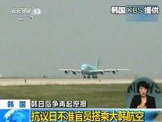 日韓領(lǐng)土爭(zhēng)議再起 日禁外交官搭乘韓航