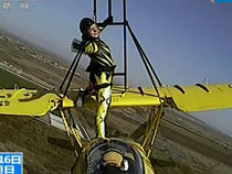 陜西:特技飛行表演者扮貓女在機(jī)翼行走