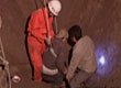 消防官兵迅速用一個(gè)兩端直通的鐵桶固定好小孩被陷的位置,然后小心下到坑里,用鐵鍬和碗等工具小心地將沙子挖到外面。