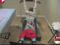 跑步機(jī)上練滑雪板 不慎摔倒出洋相