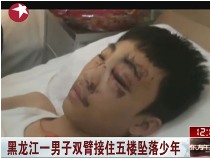 黑龍江一男子雙臂接住五樓墜落少年