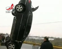 一時心急:油門當(dāng)剎車 轎車沖進(jìn)河