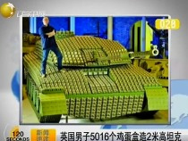 英國男子5016個(gè)雞蛋盒造2米高坦克