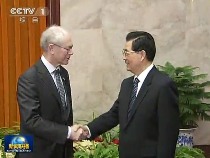 胡錦濤會(huì)見(jiàn)歐洲理事會(huì)主席和歐盟委員會(huì)主席