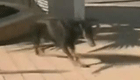 大個子杜賓犬與小狗交戰(zhàn)被嚇跑