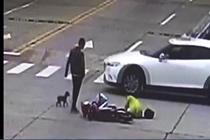 實拍奔馳女司機高速急剎車 引大掛車猛撞
