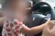 實拍男子抱2歲娃開車