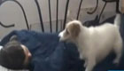 【同期】(臺(tái)灣藝人 陳志朋)有一點(diǎn)點(diǎn)父愛的味道吧!剛才舔我身上,覺得很好玩,很幸福,很像抱了一個(gè)嬰兒一樣。因?yàn)槠鋵?shí)它們很可愛,就是跟小孩子一樣,就是用抓的。