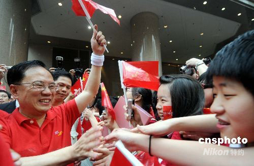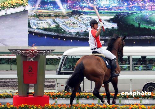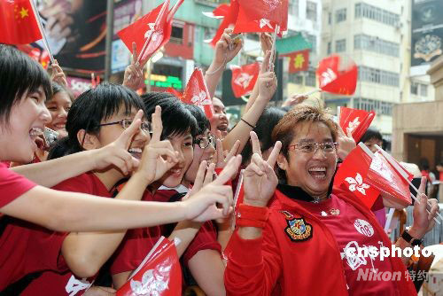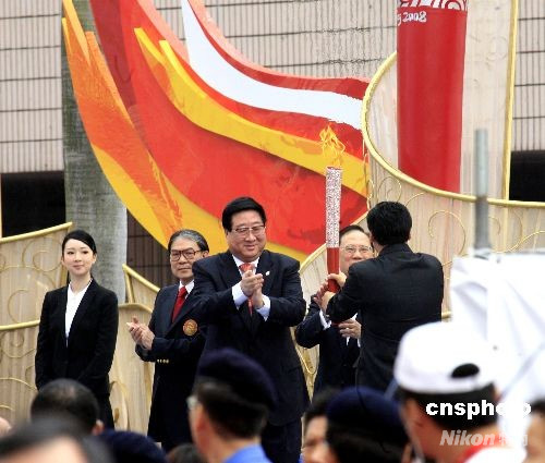 二日上午十時(shí)二十五分左右,香港首枚奧運(yùn)金牌得主、退役帆板運(yùn)動(dòng)員李麗珊從香港特首曾蔭權(quán)手中接過“祥云”火炬,沿著紅地毯跑出香港文化中心露天廣場(chǎng),北京奧運(yùn)圣火在“東方之珠”香港的傳遞正式啟動(dòng)……