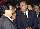 | 法國(guó)總統(tǒng)希拉克將率領(lǐng)包括300多企業(yè)家的龐大代表團(tuán)于10月8日至12日對(duì)中國(guó)進(jìn)行國(guó)事訪問(wèn)并出席法國(guó)文化年開(kāi)幕活動(dòng)。根據(jù)日程安排,希拉克將訪問(wèn)成都、北京、上海和香港。此次是希拉克作為總統(tǒng)第三次訪問(wèn)中國(guó)。 |