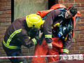 消防人員在事故現(xiàn)場待命