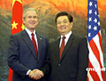 胡錦濤與布什會(huì)談 就發(fā)展中美關(guān)系提出五點(diǎn)建議