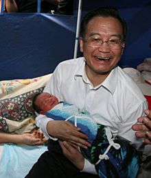 溫家寶看望地震災(zāi)區(qū)群眾 號召"挺起不屈的脊梁"