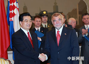圖:胡錦濤與克羅地亞總統(tǒng)梅西奇舉行會(huì)談