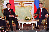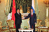 中國(guó)國(guó)家主席胡錦濤與俄總統(tǒng)梅德韋杰夫會(huì)談