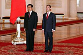 俄羅斯總統(tǒng)梅德韋杰夫舉行儀式歡迎胡錦濤到訪