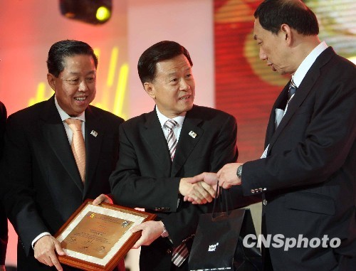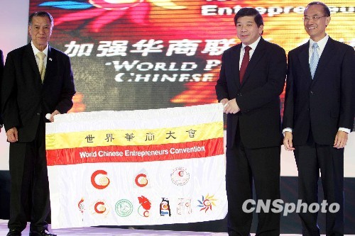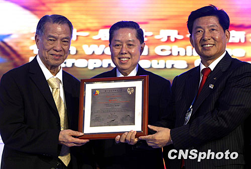 世界華商大會:陳永栽向魏家福頒發(fā)證書