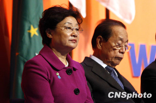 圖:賈慶林在菲律賓出席世界華商大會開幕式