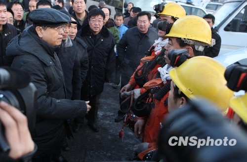 圖:張德江在鶴崗礦難事故現(xiàn)場(chǎng)指導(dǎo)救援工作