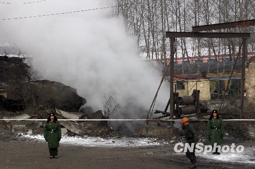 圖:鶴崗礦難現(xiàn)場(chǎng)井口冒出濃濃蒸汽