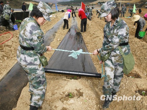 圖:抗旱突擊隊(duì)鋪設(shè)輸水管線
