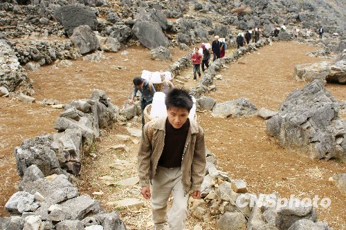 圖:廣西鳳山瑤胞背水抗災(zāi)自救