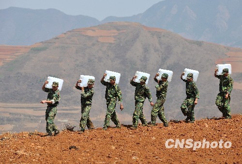 圖:空軍駐滇某部送水進(jìn)村潤民心