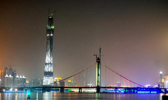廣州電視觀光塔(又稱廣州塔、廣州新電視塔),建于廣州市海珠區(qū)赤崗塔附近地面,距離珠江南岸125米,與海心沙島及廣州新電視塔夜景珠江新城隔江相望。是一座以觀光旅游為主,具有廣播電視發(fā)射、文化娛樂(lè)和城市窗口功能的大型城市基礎(chǔ)設(shè)施,將為2010年在廣州召開(kāi)的第十六屆亞洲運(yùn)動(dòng)會(huì)提供轉(zhuǎn)播服務(wù)。該塔仍然在建,由上海建工集團(tuán)負(fù)責(zé)施工,預(yù)計(jì)2009年9月竣工。竣工后的廣州電視觀光塔整體高度達(dá)到610米,將取代加拿大的西恩塔成為世界第一高塔,也將成為廣州的新地標(biāo)。其中塔身主體454米,天線桅桿156米。
