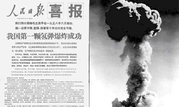 在氫彈爆炸成功的同時,中國政府重申:“中國進行必要而有限制的核試驗,發(fā)展核武器,完全是為了防御,其最終目的就是為了消滅核武器”。“在任何時候,任何情況下,中國都不會首先使用核武器!