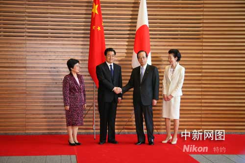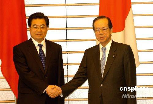 日本酒店懸掛中日國旗迎接胡錦濤訪日