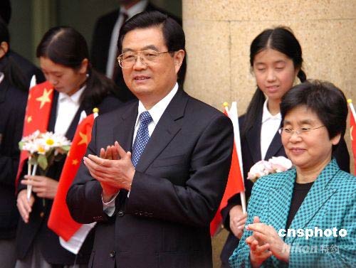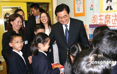 胡錦濤在日本橫濱山手中華學?赐麕熒