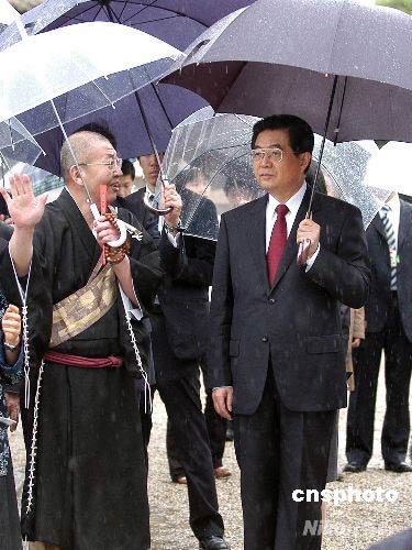 圖:胡錦濤主席在雨中接受日本小姑娘的獻花