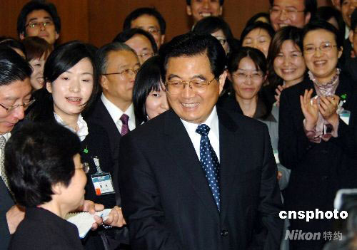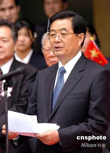 圖:胡錦濤在橫濱中華山手學校發(fā)表重要講話