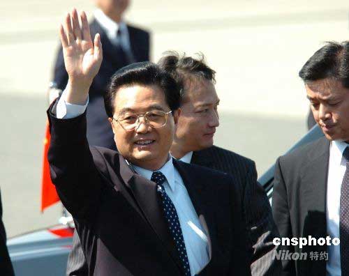 高村正彥、崔天凱等到機場迎接胡錦濤