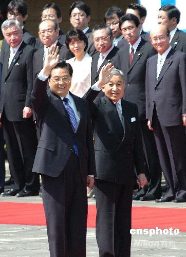 圖:日本天皇夫婦歡迎胡錦濤及夫人