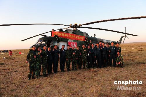 成功搜救返回艙后 陸航飛行員合影慶祝