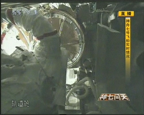圖:翟志剛在軌道艙做準(zhǔn)備
