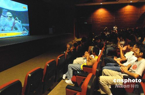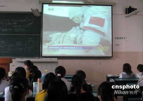 圖:廈門大學(xué)學(xué)生關(guān)注神七航天員翟志剛出艙
