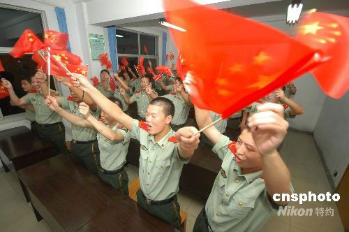 圖:邊防官兵熱烈祝賀“神七”發(fā)射成功