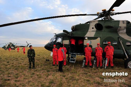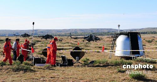 圖:"神七"返回艙搜救任務(wù)人員進(jìn)行最后演練