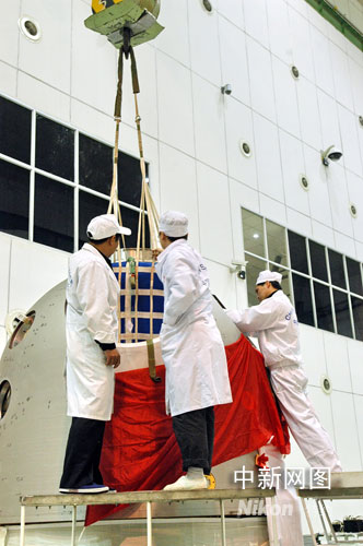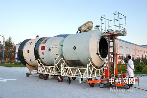 圖:“神七”軌道艙進(jìn)行艙門檢漏