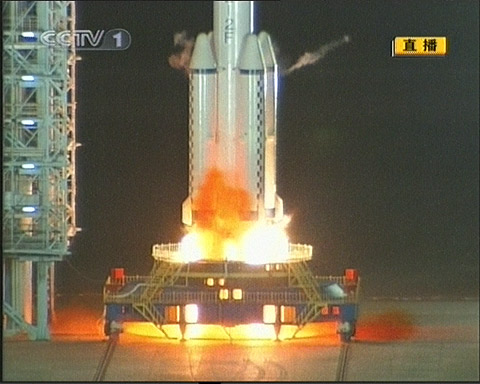 圖:中國航天專家觀看神舟七號飛船發(fā)射直播