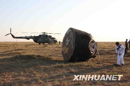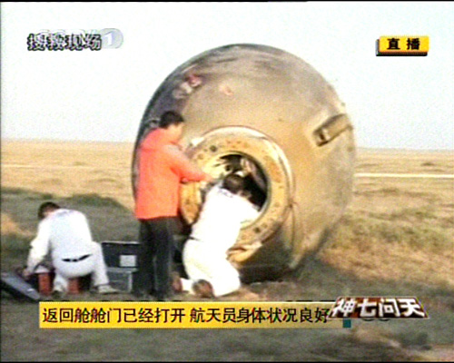 圖:神舟七號返回在即航天員穿好艙內(nèi)服