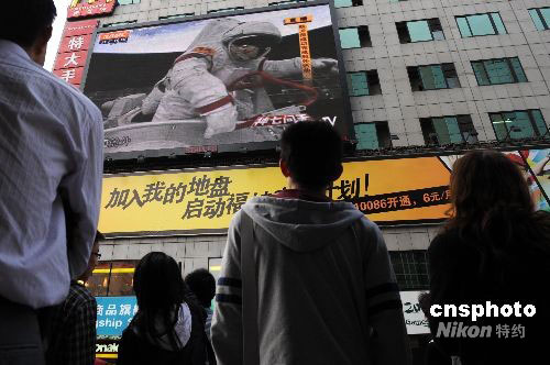香港民眾關(guān)注“神七”航天員翟志剛漫步太空