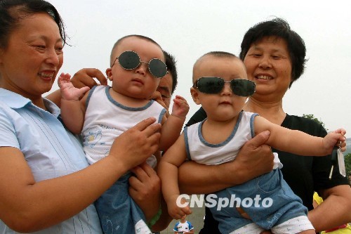 中國各地群眾觀看日食奇觀:安徽蕪湖孿生小兄弟觀日食