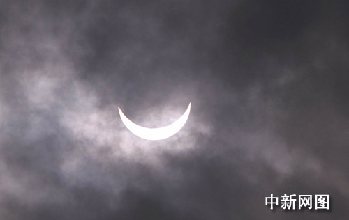 中國各地觀測日食奇觀:南寧出現(xiàn)日食奇特景觀