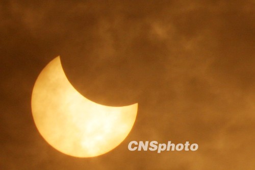 圖:“大日食”如約光臨重慶 當(dāng)?shù)厥忻衤N首觀看(2)